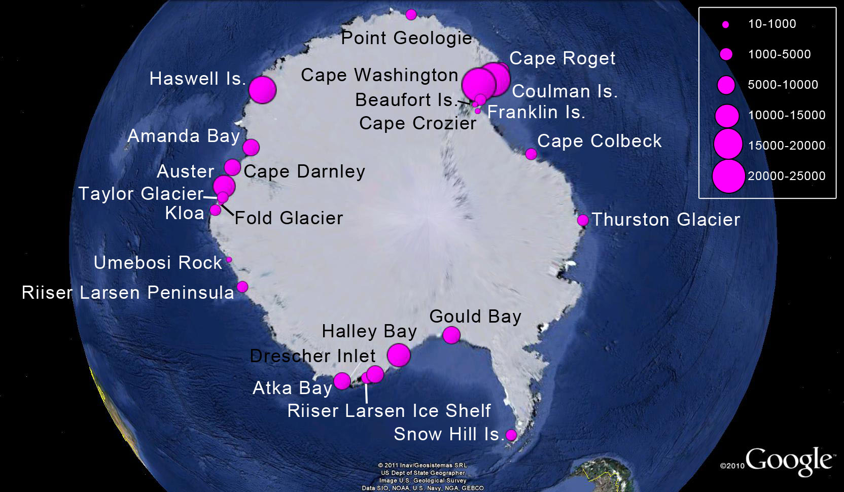 wide; in the Ross Sea, the extent of fast ice in the area of colonies is only a