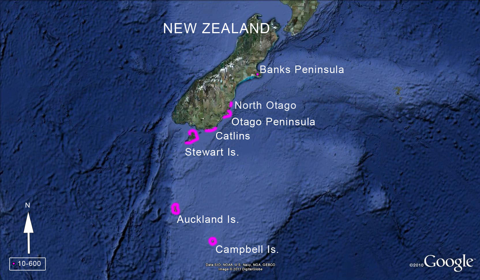 New Zealand: South-east coast of South Island, Stewart Island and adjacent island, Aukland and Campbell Islands.